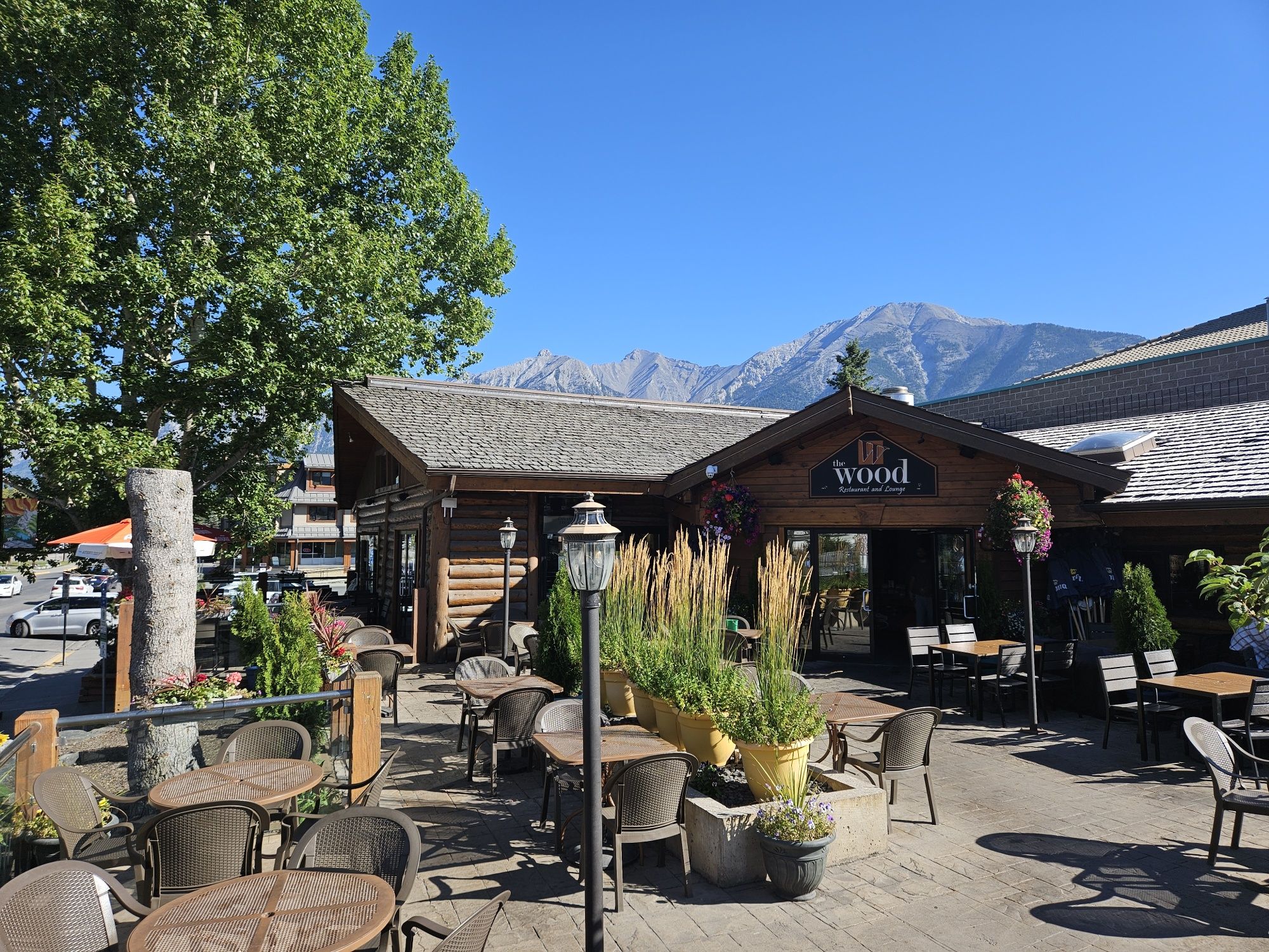 Located on Canmore's premeire corner, The Wood Restaurant has become an iconic destination in Canmore. The restaurant is in a rustic log building featuring a massive patio, both with majestic views of the local mountain ranges. A stone fireplace, vaulted ceilings and plenty of windows to take in the amazing views make the Wood a favourite spot for locals and visitors alike.